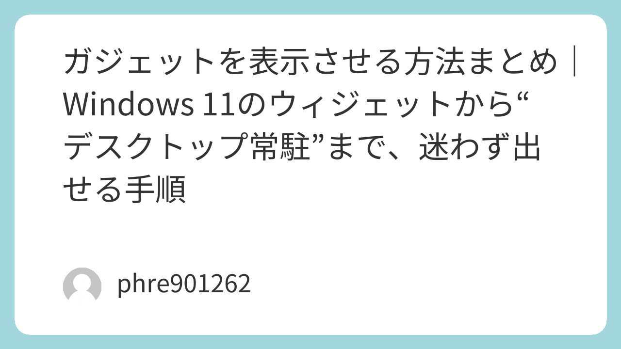 ひとつは Windows 11 の“ウィジェット”を出したいのに出せないケース。もうひとつは、昔の Windows 7 みたいに時計や天気を“デスクトップに置きっぱなし”にしたいケース。呼び名が混ざってるので、ここを分けるだけで一気に楽になります。