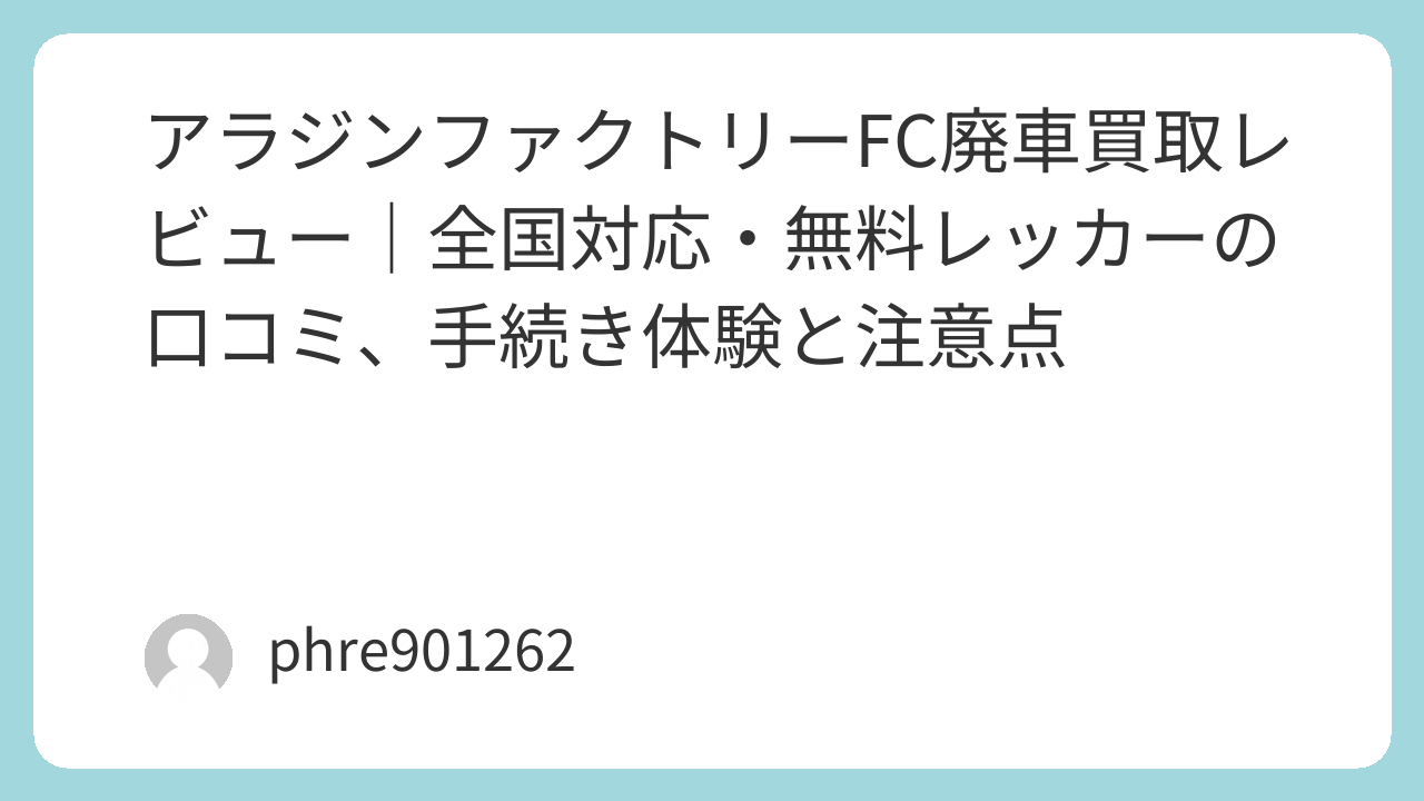 アラジンファクトリーFCは、廃車・不動車の処分で詰まりがちな「引取り」「手続き」「連絡の手間」をまとめて整理しやすいサービス。高額査定だけを狙う世界じゃないけど、やることが多すぎて止まってしまった人には刺さる。