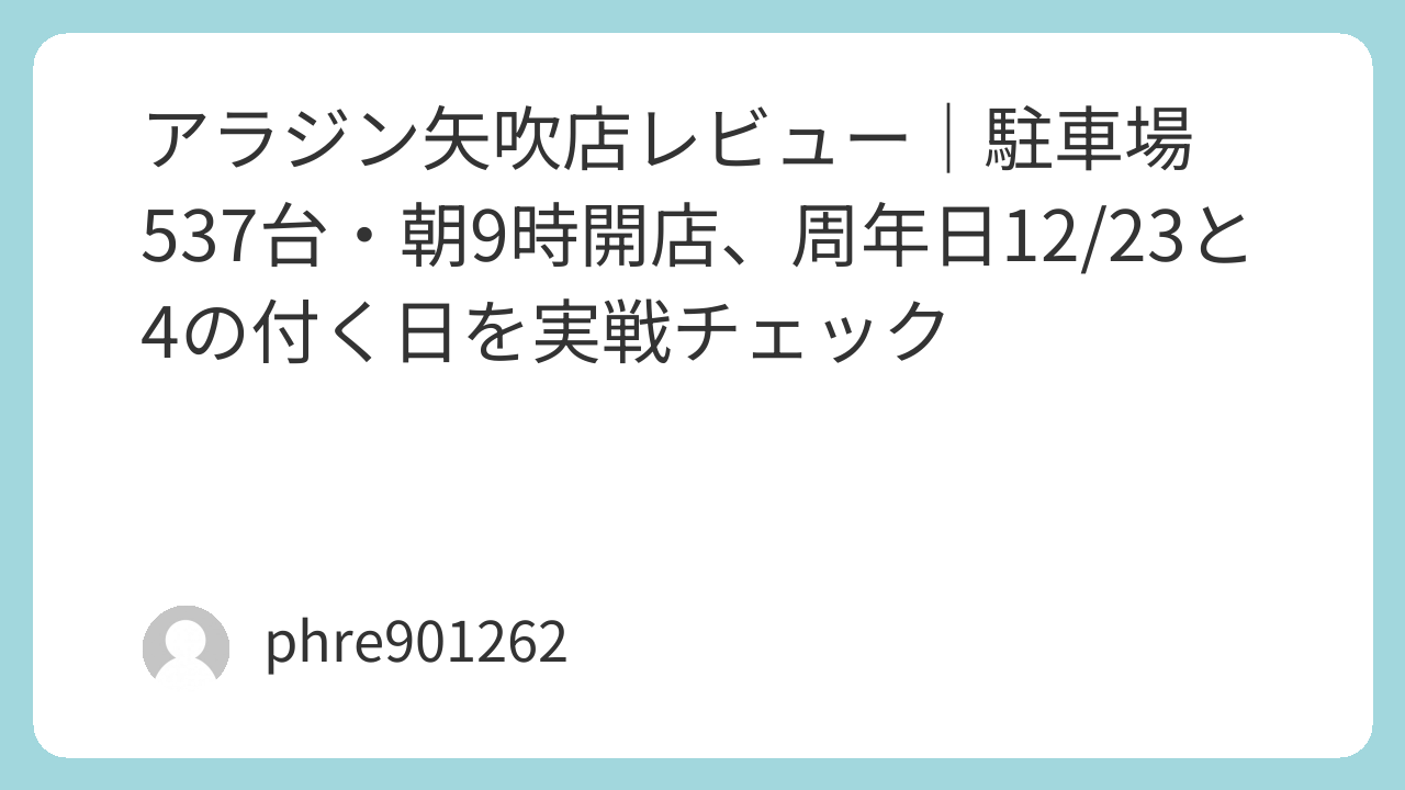 アラジン矢吹店レビュー|駐車場537台・朝9時開店、周年日12/23と4の付く日を実戦チェック