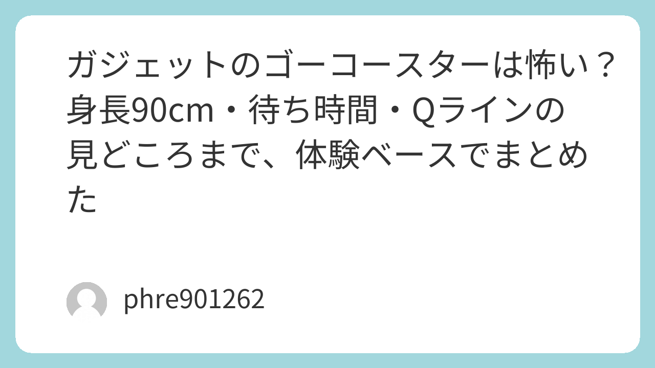 今回は、初めて乗った日の体験を軸に、怖さ・身長制限(90cm)・待ち時間の肌感・並び列の楽しみ方まで、なるべく現場目線で書く。ついでに「持ってて助かったやつ」も全部ここに置いておく。