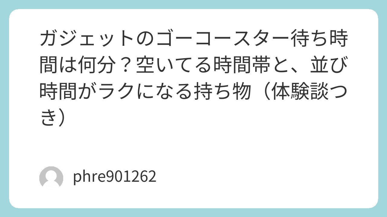 ぼくの体感だと、ガジェットのゴーコースターの待ち時間は5〜15分くらいに落ち着く日が多い。ただ、昼前後にふわっと混むことがあって、そこだけ読めない。なのでこの記事は「待ち時間の傾向」だけじゃなく、短い待ちでも疲れないやり方を中心にまとめます。持ち物で体感が変わるタイプのアトラクなので。