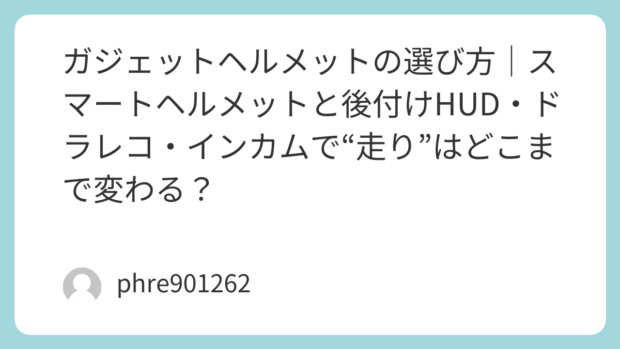 ガジェットヘルメットの選び方|スマートヘルメットと後付けHUD・ドラレコ・インカムで“走り”はどこまで変わる?