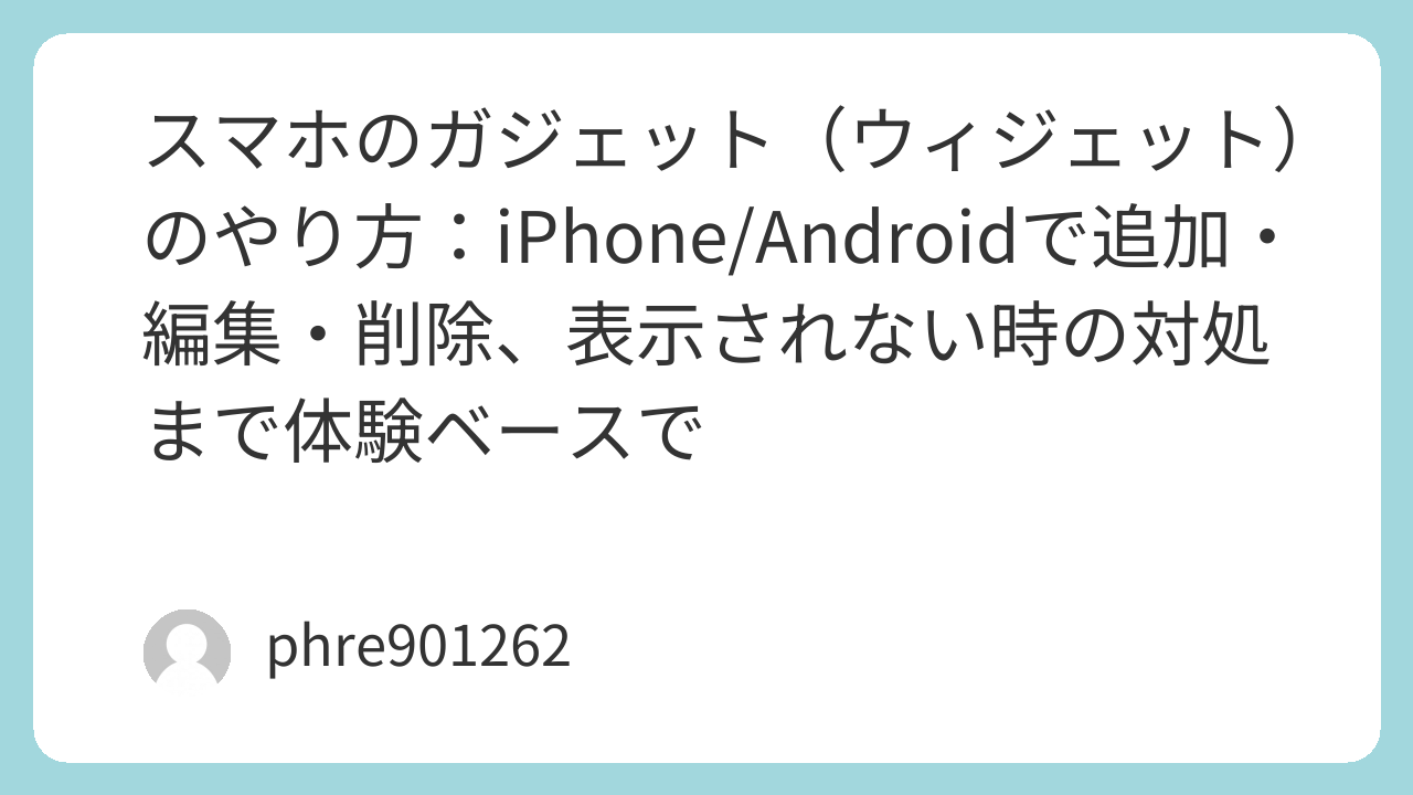 「ガジェットのやり方」で検索してここに来た人、たぶん探してるのは“ホーム画面に天気とか予定が出るやつ”だと思う。呼び方は端末や人によってブレるけど、いわゆるウィジェットのこと。