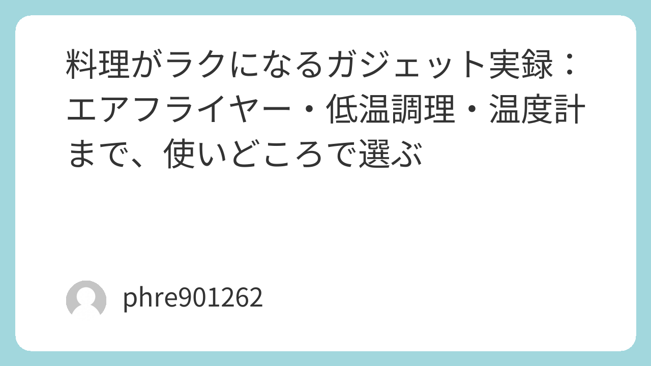 結論から言うと、“料理の失敗を減らす道具”から入ると外しにくい。時短はその次でも間に合う。ここ、わりと大事。