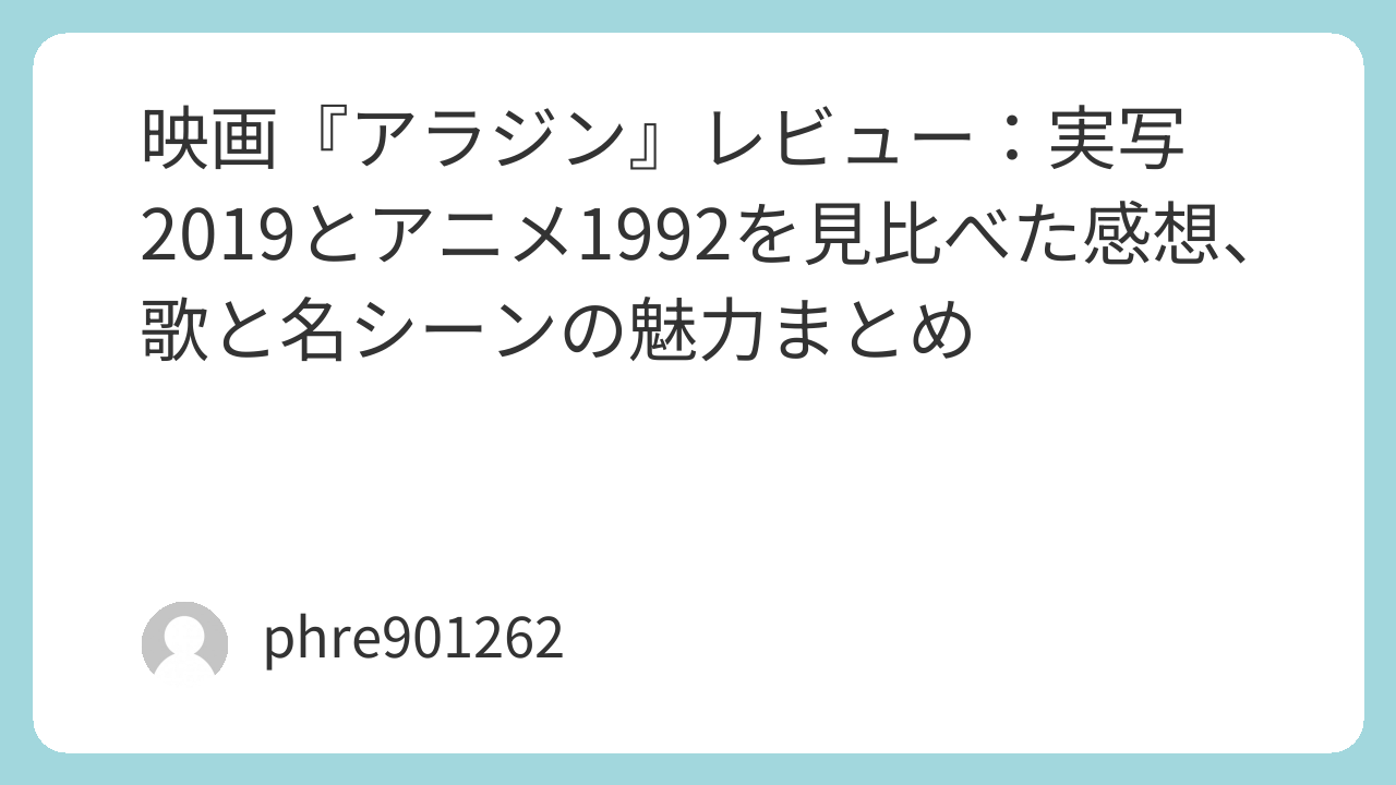 『アラジン』は、魔法と冒険の話に見せて、実は「自分の人生をどう選ぶか」の物語だった。実写はライブ感で気分を持ち上げ、アニメは密度と完成度で唸らせる。