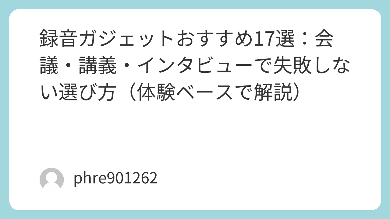 スマホで録ったら声が遠い、机の振動がうるさい、途中で途切れて終わった…このへん、わりと普通に起きる。だからこそ、録音ガジェットは用途と距離で割り切るのが早い。