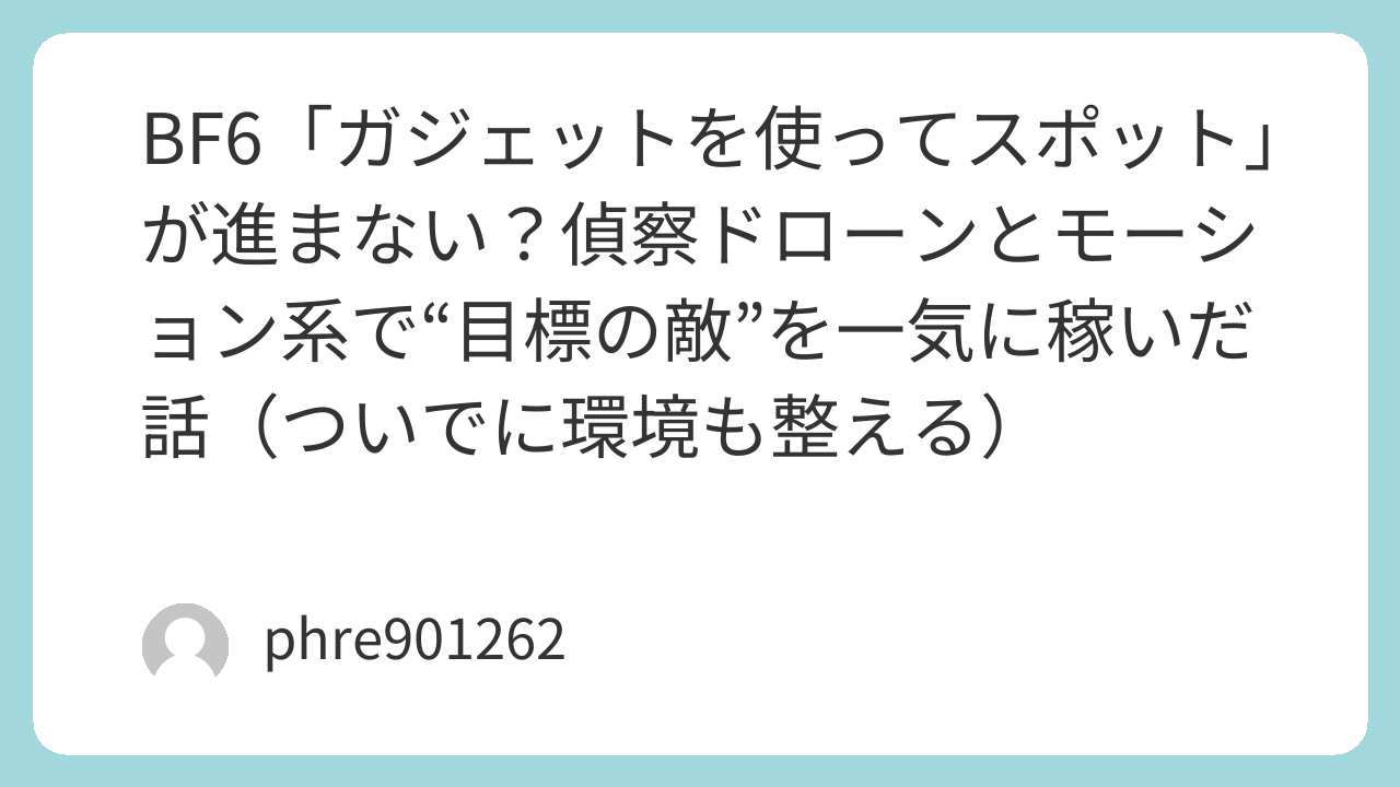 BF6のチャレンジ文でよく出てくる「ガジェットを使ってスポット」。これ、普通にプレイしてるつもりでも全然増えない瞬間がある。自分も最初それで沼りました。