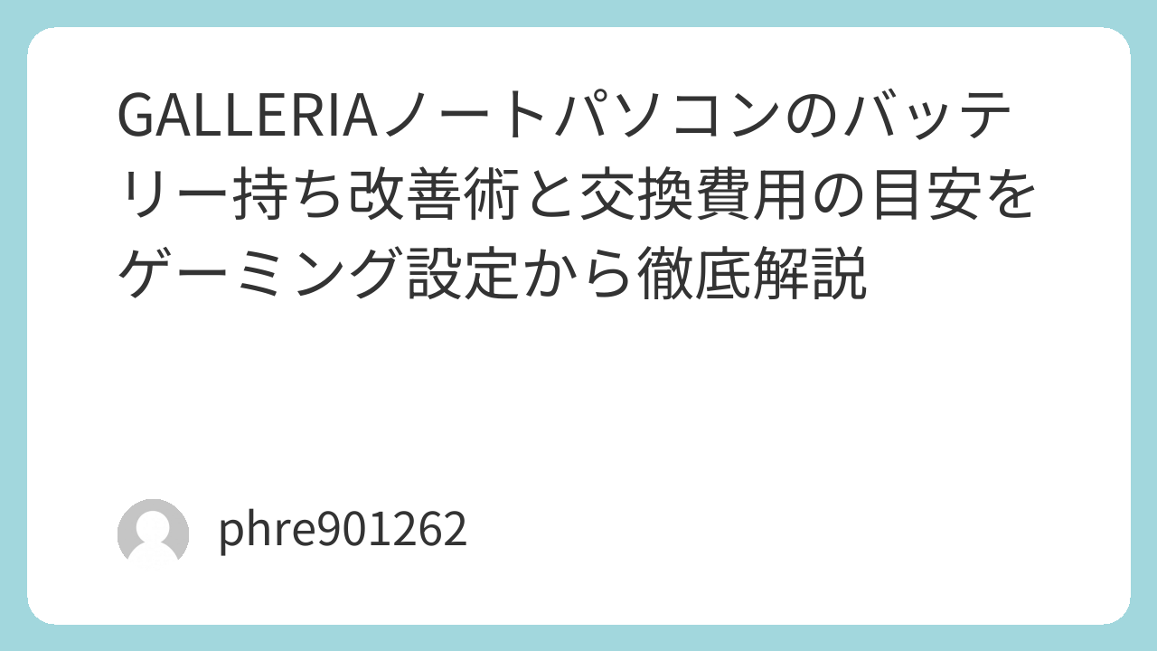 GALLERIAのノートパソコンで「バッテリーがすぐ減る」「外出先で電源が心配」「交換って高いの?」と感じる人は多いはずです。ゲーミングノートは性能を優先しているぶん、何も考えずに使うと消費電力が増えやすく、体感の持ちが短くなりがちです。けれど逆に言えば、設定と運用を整えるだけで“困らないレベル”まで引き上げられます。この記事では、バッテリーが減る理由から、今すぐ効く改善策、交換の判断ポイントまでを一気につなげて解説します。