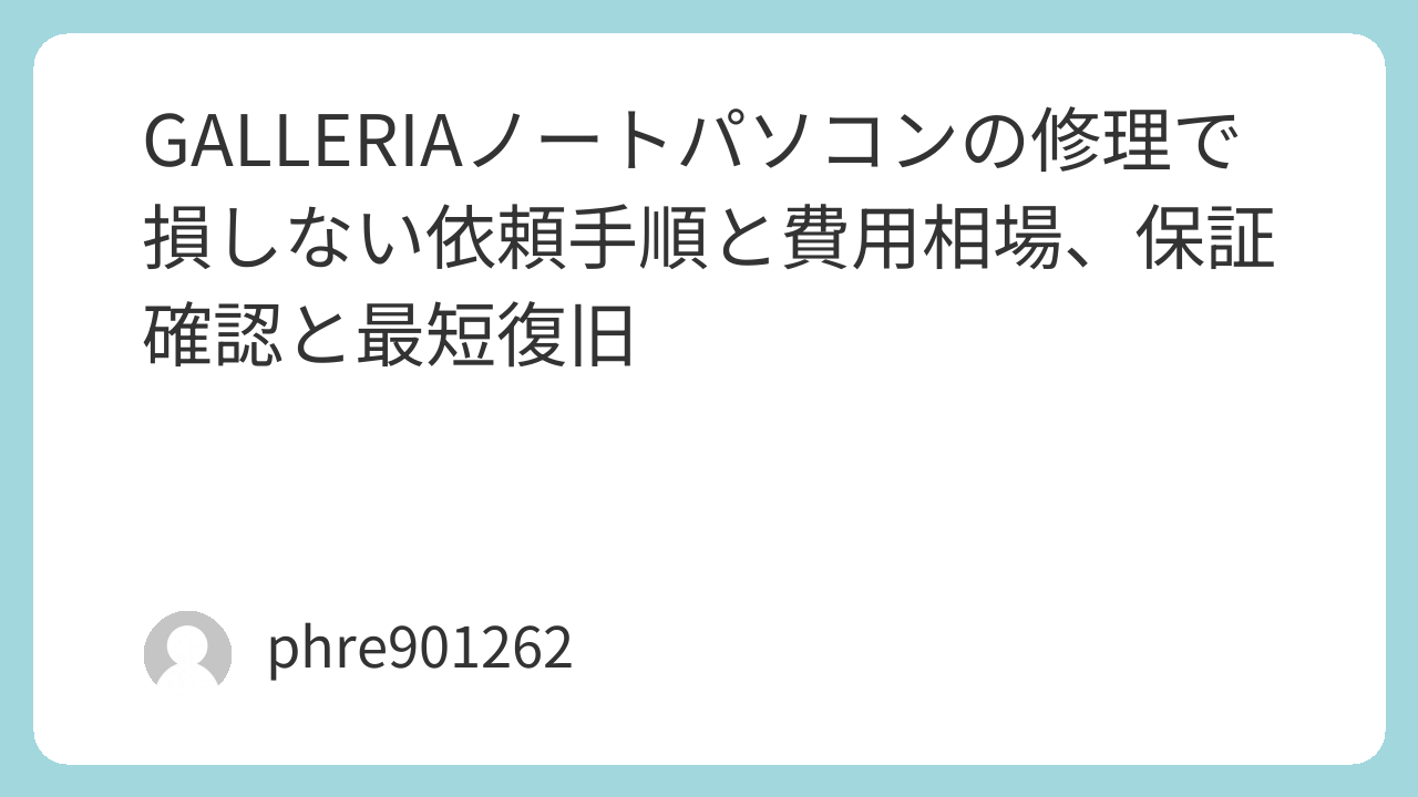 GALLERIAのノートパソコンが急に起動しなくなったり、ファンが唸るような音を出し始めたりすると、真っ先に浮かぶのは「どこへ出すのが正解?」という不安です。修理は焦って動くほど遠回りになりやすいので、まずは“切り分け→相談→依頼”の順で進めると、費用も復旧時間もグッと読みやすくなります。
