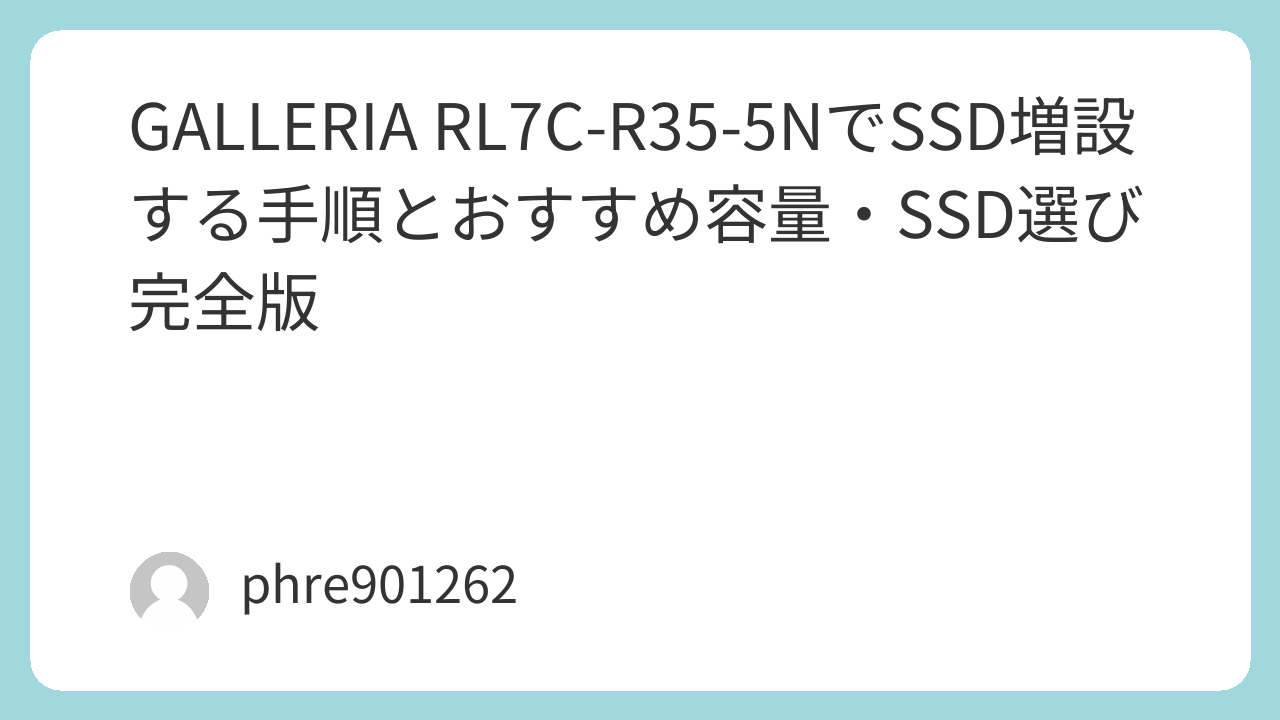 GALLERIA RL7C-R35-5NでSSD増設する手順とおすすめ容量・SSD選び完全版