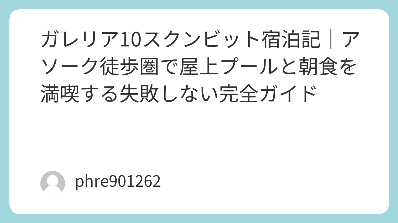 ガレリア10スクンビット宿泊記|アソーク徒歩圏で屋上プールと朝食を満喫する失敗しない完全ガイド