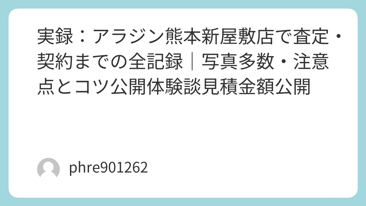 実録:アラジン熊本新屋敷店で査定・契約までの全記録|写真多数・注意点とコツ公開体験談見積金額公開