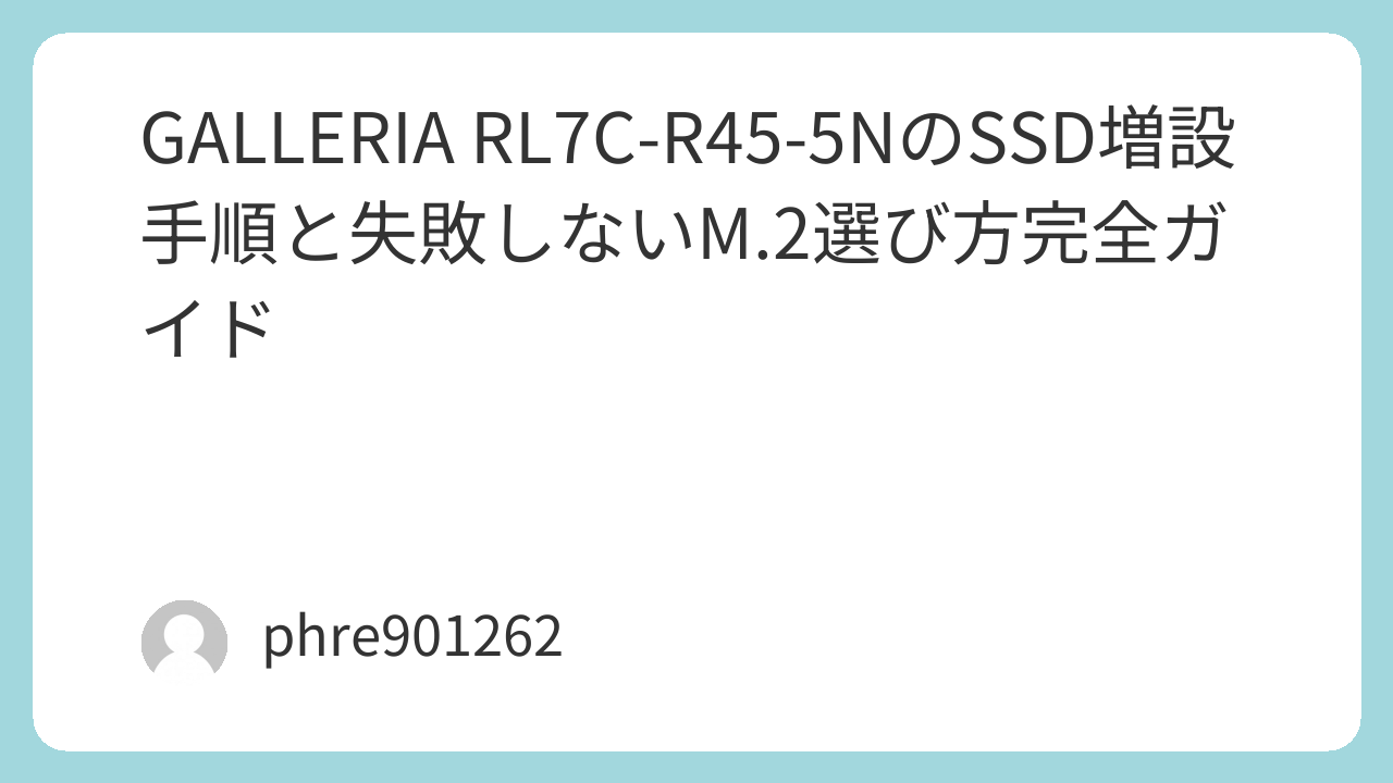 GALLERIA RL7C-R45-5Nを使っていて、「ゲームを数本入れたらもう容量がきつい」「録画データや素材があふれて管理が面倒」と感じたら、いちばん手堅い強化がSSD増設です。買い替えよりも費用対効果が高く、体感も変わりやすいので、やってよかったと言いやすいアップグレードになります。