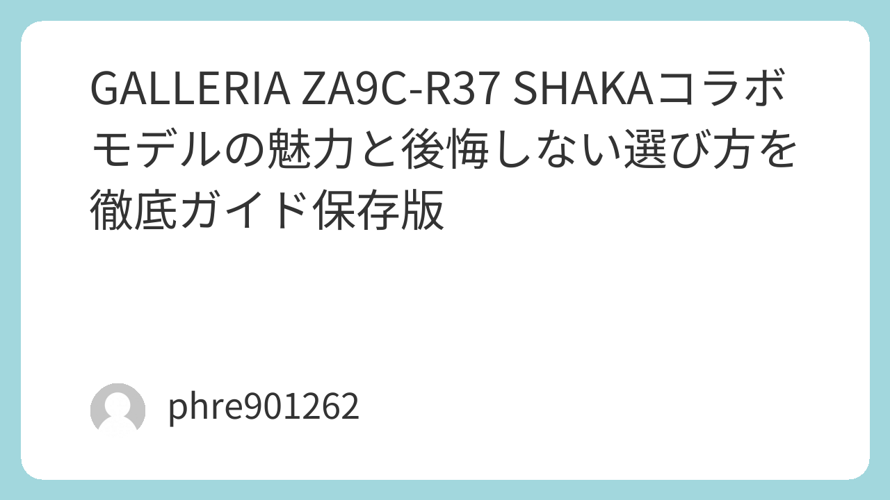 GALLERIA ZA9C-R37 SHAKAコラボモデルの魅力と後悔しない選び方を徹底ガイド保存版