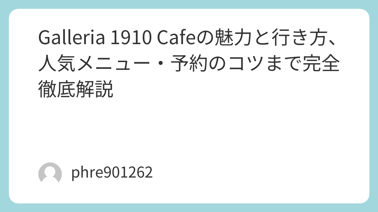 Galleria 1910 Cafeの魅力と行き方、人気メニュー・予約のコツまで完全徹底解説