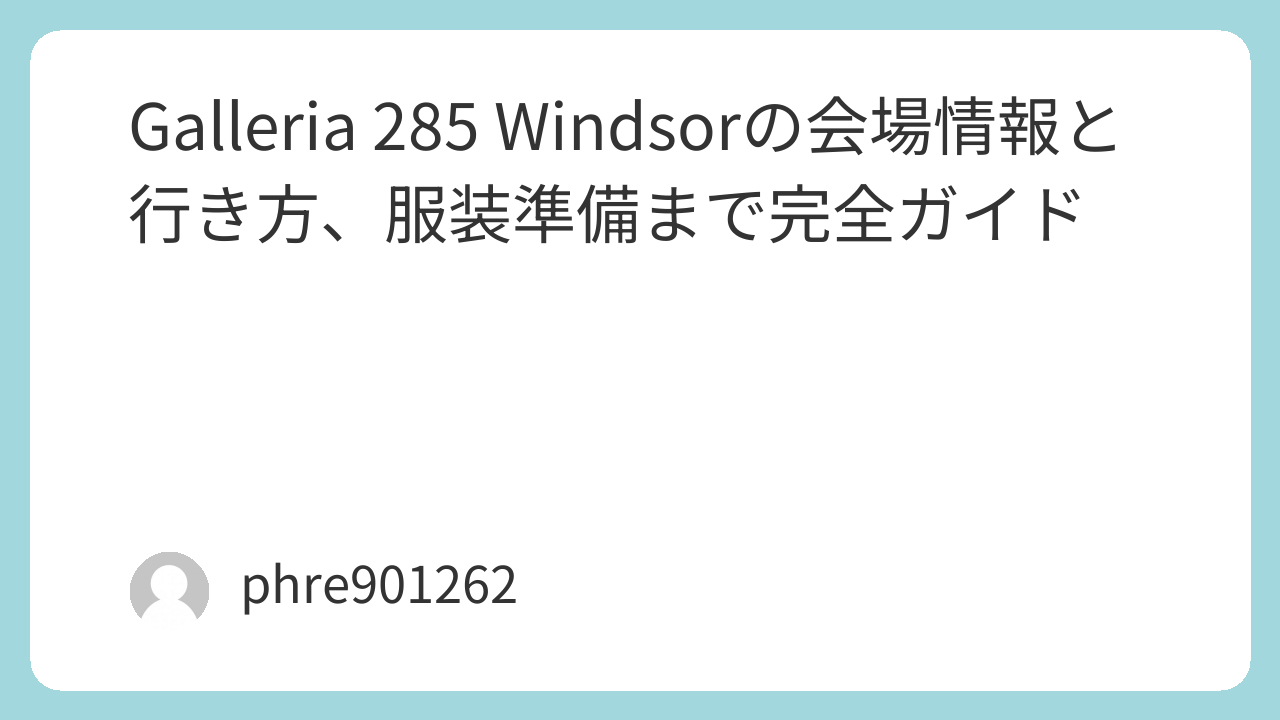 「Galleria 285 Windsor」と検索する人が知りたいのは、だいたいこの3つに集約されます。どこにあるのか、どんな雰囲気で開催されるのか、そして当日どう動けば失敗しないのか。初めての土地でも迷わないように、会場の捉え方からアクセス、混雑対策、持ち物と服装のコツまで一気にまとめました。