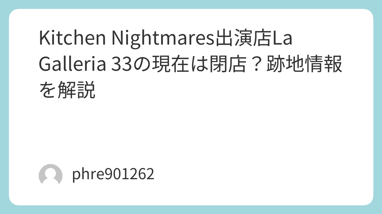 La Galleria 33は、ゴードン・ラムゼイの番組「Kitchen Nightmares」に登場したことで一気に知名度が上がりました。ところが、現在は営業していないため、当時の看板メニューや店内の雰囲気を目的に訪れても同じ体験はできません。