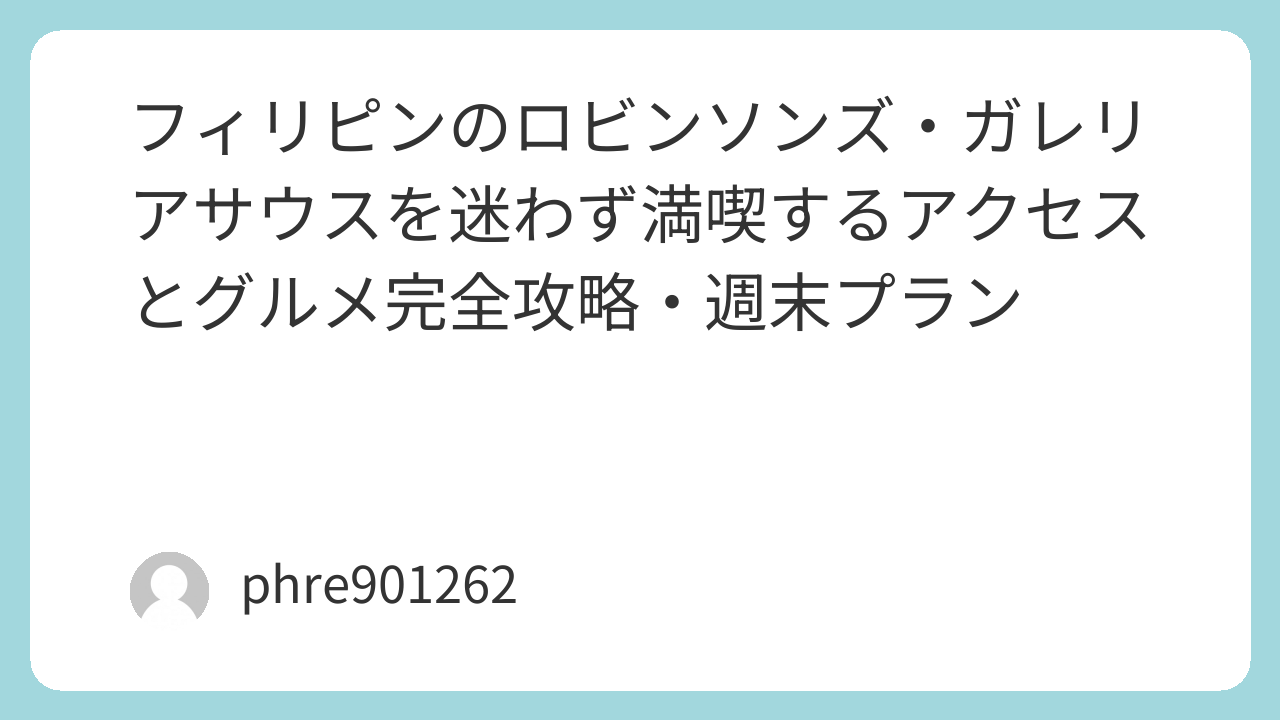 そして“現地で一番ラクになる道具”がネット回線。地図検索、配車、翻訳、レストランの場所確認まで、通信があるだけで行動の自由度が跳ね上がります。短期滞在でもつながりやすさを優先するなら【フィリピン eSIM】(https://www.amazon.co.jp/s?k=%E3%83%95%E3%82%A3%E3%83%AA%E3%83%94%E3%83%B3+eSIM&tag=opason-22)をチェックしておくと、SIMの差し替えを気にせず動けて快適です。移動時間が長い人は、耳が疲れにくい【ノイズキャンセリングイヤホン】(https://www.amazon.co.jp/s?k=%E3%83%8E%E3%82%A4%E3%82%BA%E3%82%AD%E3%83%A3%E3%83%B3%E3%82%BB%E3%83%AA%E3%83%B3%E3%82%B0%E3%82%A4%E3%83%A4%E3%83%9B%E3%83%B3&tag=opason-22)を持っていくと、モールの賑わいの中でも集中して休めます。飛行機や長距離移動があるなら【ネックピロー】(https://www.amazon.co.jp/s?k=%E3%83%8D%E3%83%83%E3%82%AF%E3%83%94%E3%83%AD%E3%83%BC&tag=opason-22)もあると到着後の疲労感がかなり違います。