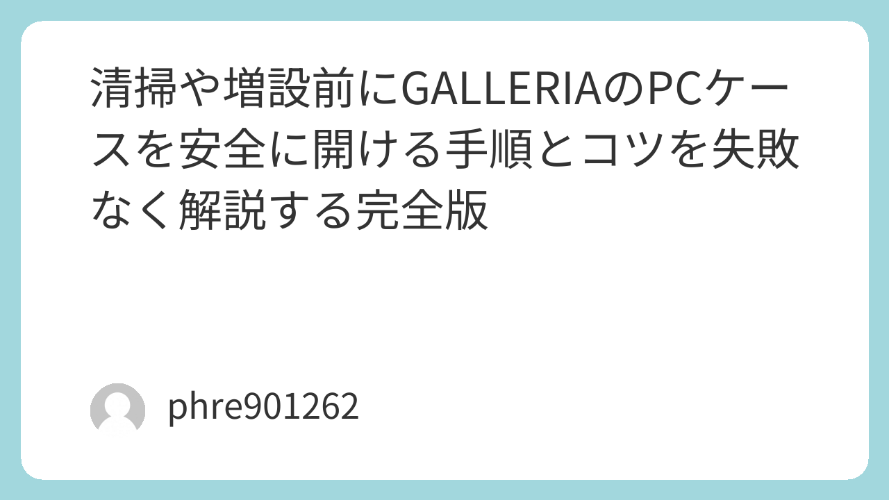 GALLERIAのケースを開けたいと思った瞬間、まず頭に浮かぶのは「壊したらどうしよう」という不安かもしれません。ですが、ポイントさえ押さえれば作業は驚くほどシンプルです。ホコリ掃除でも増設でも、最初の一歩は同じ。この記事では、初めてでも失敗しにくい“安全な開け方”を、実際の作業の流れに沿ってわかりやすくまとめます。