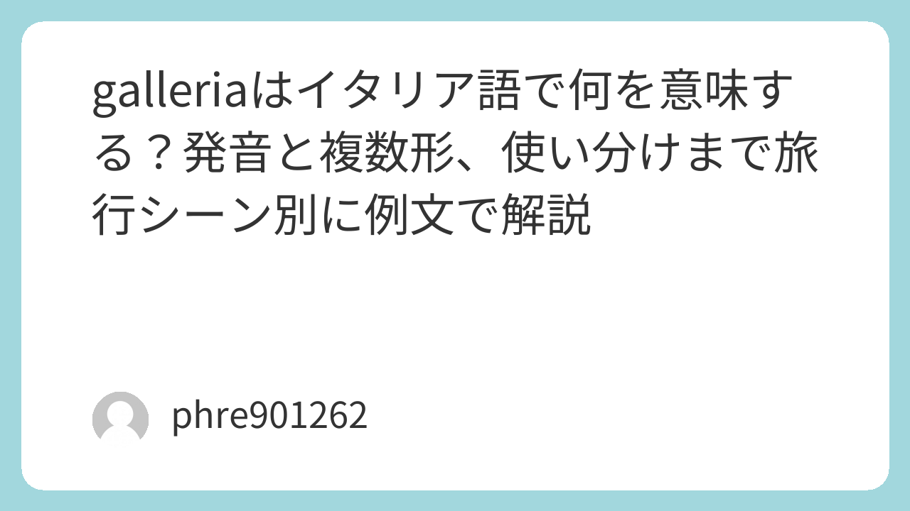 次にイタリア旅行の計画を立てるときは、街の名前や施設名にgalleriaが含まれていたら“どのタイプのgalleriaか”を想像してみてください。検索で得た知識が、現地の景色と結びついてちゃんと役に立ちます。