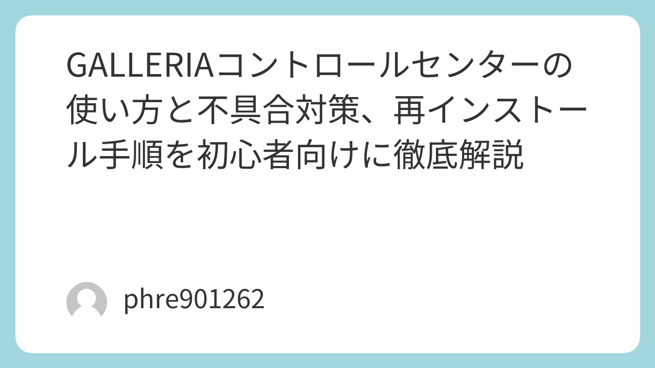 GALLERIAコントロールセンターの使い方と不具合対策、再インストール手順を初心者向けに徹底解説