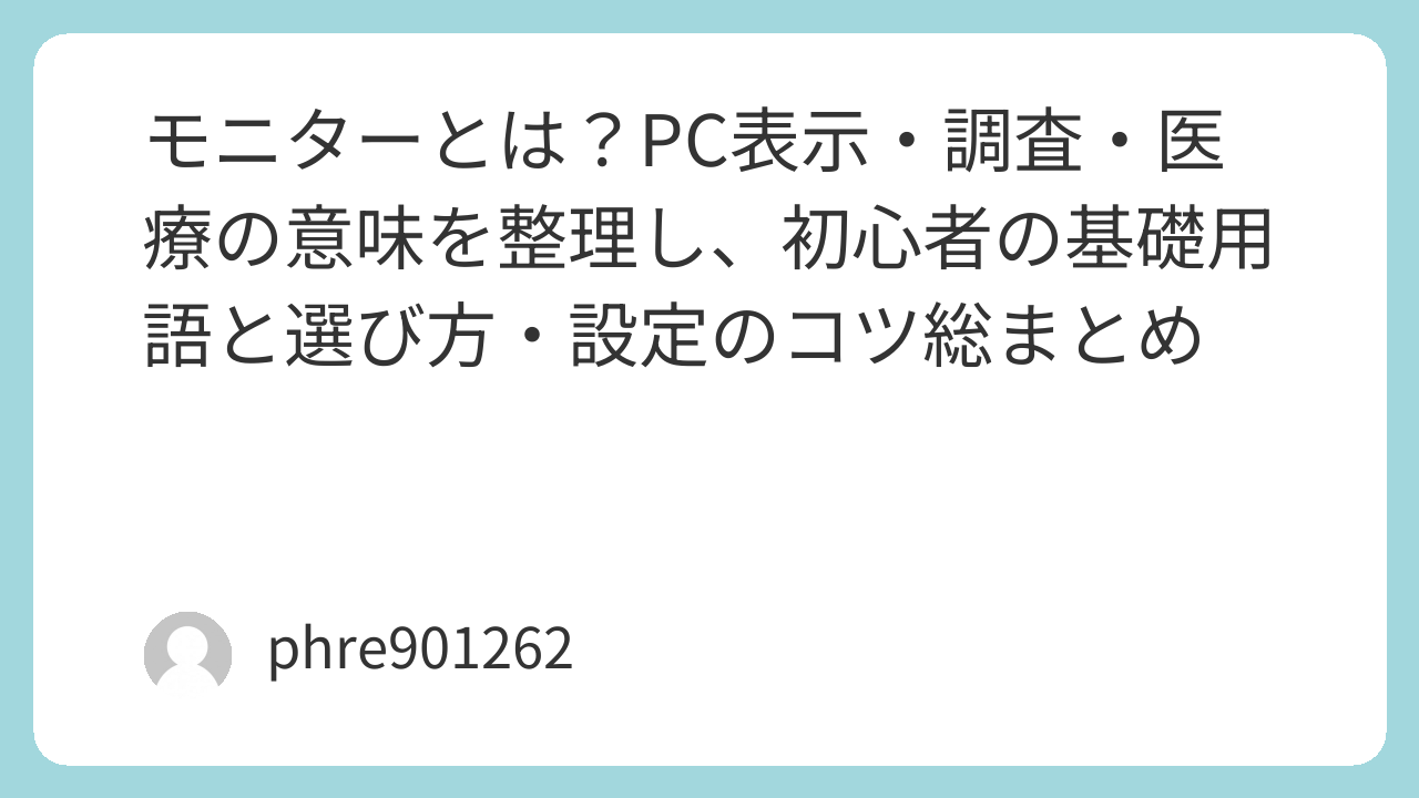 モニターとは?PC表示・調査・医療の意味を整理し、初心者の基礎用語と選び方・設定のコツ総まとめ