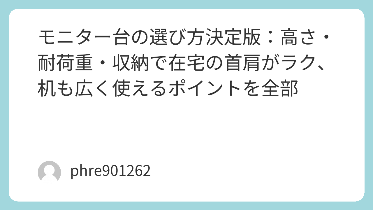 モニター台の選び方決定版:高さ・耐荷重・収納で在宅の首肩がラク、机も広く使えるポイントを全部