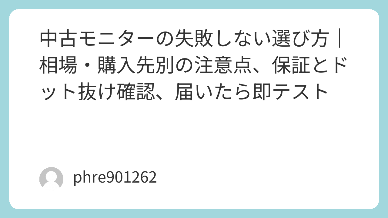 中古モニターは、条件さえ固めればコスパが出る。逆に、保証を読まず、接続環境を用意せず、届いた日にテストしないと負けやすい。買う前に「用途」「購入先」「返品期限」を整理して、届いたら即チェック。これだけで“安くていい買い物”に寄せられる。
