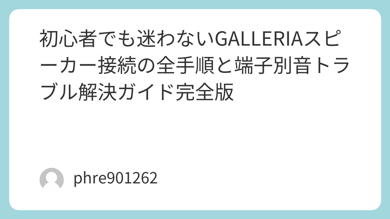 GALLERIAにスピーカーを接続するとき、配線そのものより厄介なのが「どの端子で、どの出力先を選ぶか」だ。背面の緑ジャックに挿したのに無音、HDMIで画面は映るのに音だけ消える、Bluetoothはつながった表示なのに鳴らない──この手の迷子は、手順を端子別に分けるだけで一気に減る。この記事では、よくある接続パターンを整理し、Windows側の設定とトラブルの切り分けまでまとめて片づける。