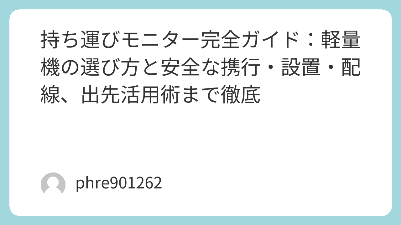 持ち運びモニター完全ガイド:軽量機の選び方と安全な携行・設置・配線、出先活用術まで徹底