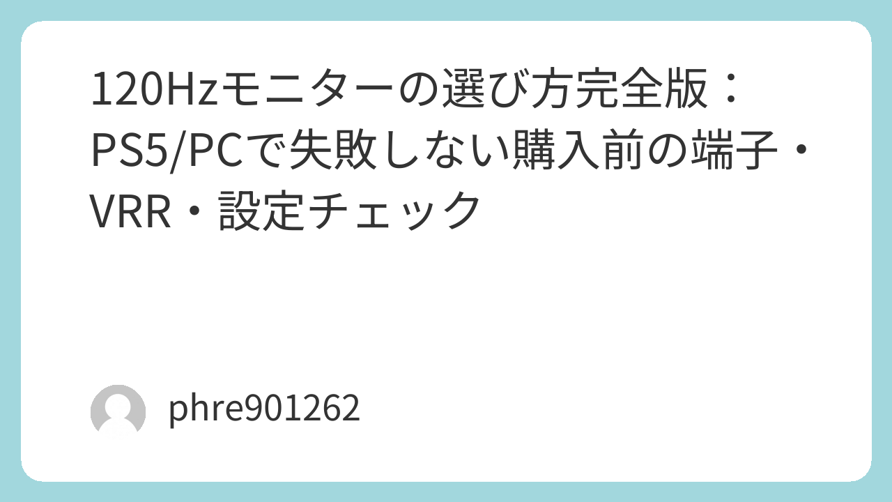 - PS5は本体設定で120Hzを有効にしたうえで、ゲーム側に120fpsモードがあるかも確認する。ここを見落とすと永遠に60Hz気分になります。