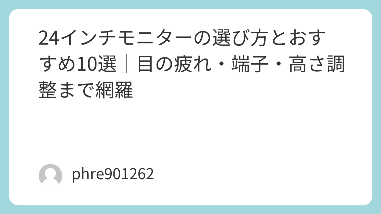 最後に、24インチ選びを1分でまとめる。仕事中心なら「IPS系+ノングレア+高さ調整+端子の数」で、候補の方向性として【Dell P2425H 23.8インチ モニター】https://www.amazon.co.jp/s?k=Dell%20P2425H%2023.8%E3%82%A4%E3%83%B3%E3%83%81%20%E3%83%A2%E3%82%BF%E3%83%BC&tag=opason-22 や、コスパ重視なら【BenQ GW2490-JP 23.8インチ モニター】https://www.amazon.co.jp/s?k=BenQ%20GW2490-JP%2023.8%E3%82%A4%E3%83%B3%E3%83%81%20%E3%83%A2%E3%83%8B%E3%82%BF%E3%83%BC&tag=opason-22 のような考え方がしっくりくる。ゲーム中心なら「144Hz以上」で、代表的に【ASUS TUF Gaming VG249Q1A-J 23.8インチ 165Hz モニター】https://www.amazon.co.jp/s?k=ASUS%20TUF%20Gaming%20VG249Q1A-J%2023.8%E3%82%A4%E3%83%B3%E3%83%81%20165Hz%20%E3%83%A2%E3%83%8B%E3%82%BF%E3%83%BC&tag=opason-22 か【AOC 24G2SP 23.8インチ 165Hz ゲーミングモニター】https://www.amazon.co.jp/s?k=AOC%2024G2SP%2023.8%E3%82%A4%E3%83%B3%E3%83%81%20165Hz%20%E3%82%B2%E3%83%BC%E3%83%9F%E3%83%B3%E3%82%B0%E3%83%A2%E3%83%8B%E3%82%BF%E3%83%BC&tag=opason-22。ノートPCを一本で運用したいなら、給電までできる【LG 24QP750-B 23.8インチ WQHD モニター USB-C 65W】https://www.amazon.co.jp/s?k=LG%2024QP750-B%2023.8%E3%82%A4%E3%83%B3%E3%83%81%20WQHD%20%E3%83%A2%E3%83%8B%E3%82%BF%E3%83%BC%20USB-C%2065W&tag=opason-22 のような路線を最初に当てにいく。