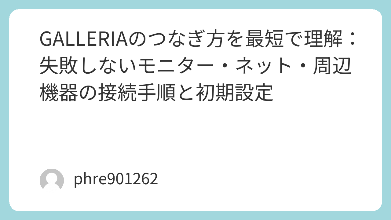GALLERIAを箱から出した直後にやることは、難しい設定よりも「正しい場所へ、正しいケーブルでつなぐ」だけ。ここを外すと、画面が映らない・音が出ない・ネットにつながらないの三重苦に落ちがちです。今日はその地雷を踏まずに、快適な環境まで一直線で持っていく手順をまとめます。