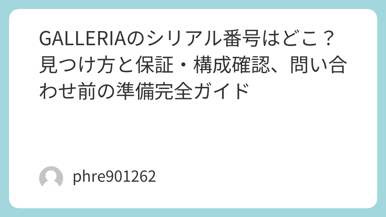 GALLERIAのシリアル番号はどこ?見つけ方と保証・構成確認、問い合わせ前の準備完全ガイド