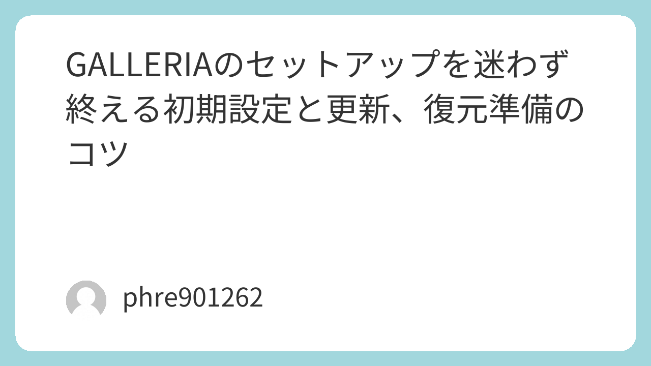 GALLERIAのセットアップは、派手な最適化より「配線を整える→更新を完走する→復元手段を作る」という順番が効いてくる。最初に土台を固めておけば、あとはゲームでも制作でも、好きな方向へ気持ちよく伸ばしていける。