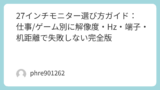 周辺機器まで含めて“体験”を底上げするなら、モニターの影響が大きい。せっかくGPUが強いのに画面が足を引っ張ると満足度が落ちるので、WQHDに踏み込むならゲーミングモニター 27インチ WQHD 165Hzのような定番条件で探すと失敗が減る。