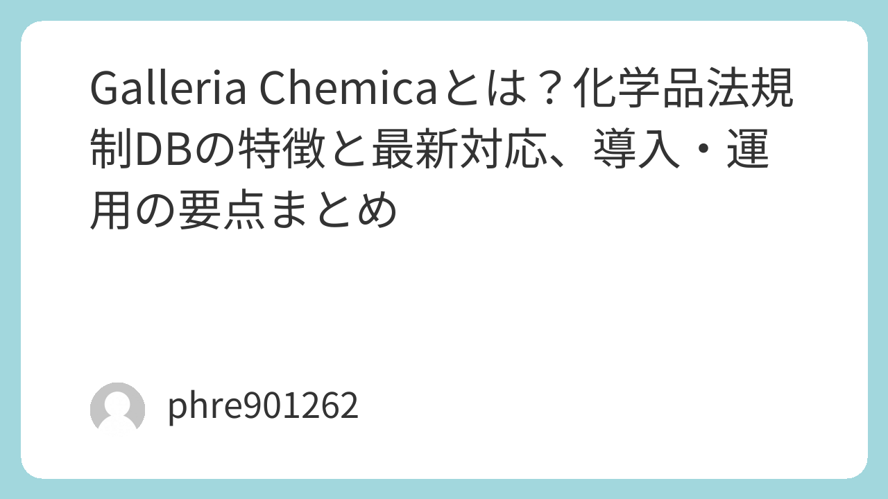 導入判断で迷う人は、「自社が抱える規制の複雑さ」を基準にするとブレにくい。国内中心で品目が少ないなら、まずは運用の整備と教育の方が先に効くかもしれない。一方で、海外拠点や輸出先が増えている、顧客からSDSや化学物質情報の問い合わせが頻発する、法規制の確認に属人的な時間がかかっている――この条件がそろうほど、Galleria Chemicaのような基盤整備は費用対効果が出やすい。社内教育を回すなら「化学物質管理 実務 本」(https://www.amazon.co.jp/s?k=%E5%8C%96%E5%AD%A6%E7%89%A9%E8%B3%AA%E7%AE%A1%E7%90%86+%E5%AE%9F%E5%8B%99+%E6%9C%AC&tag=opason-22)や「化学物質管理者 参考書」(https://www.amazon.co.jp/s?k=%E5%8C%96%E5%AD%A6%E7%89%A9%E8%B3%AA%E7%AE%A1%E7%90%86%E8%80%85+%E5%8F%82%E8%80%83%E6%9B%B8&tag=opason-22)で共通言語を作り、PRTR対応が絡むなら「PRTR 法 解説 本」(https://www.amazon.co.jp/s?k=PRTR+%E6%B3%95+%E8%A7%A3%E8%AA%AC+%E6%9C%AC&tag=opason-22)で基礎を固めると、ツール導入後の定着が早い。