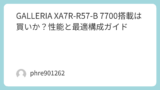 理由は、同じ型番でも販路や構成違い(ストレージ容量など)で動きが変わるから。補足でいうと、近いモデルの GALLERIA RL7C-R45-C5N が話題に混ざってきて、さらに情報が散らばることもあります。