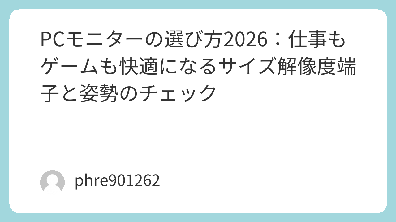 サイズと解像度を決め、端子の相性(PC側・モニター側・ケーブル)を確認し、スタンド調整で姿勢が合うかを想像する。ここまで揃えば、スペック表の細部に振り回されにくい。モニターは一度ハマると数年使う道具だから、最初の条件決めで勝ちにいこう。