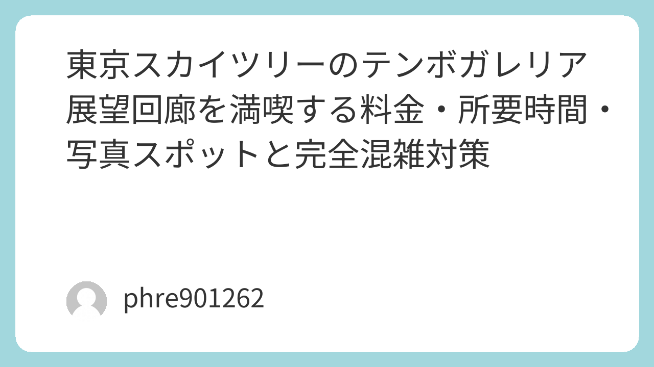 テンボガレリアは、東京スカイツリーを“ただ登る場所”から“体験する場所”へ変える装置だ。料金や混雑で迷う気持ちはわかるが、回廊の曲線と高さが生む非日常は、写真以上に記憶に残る。せっかく行くなら、時間帯を選び、撮影の小物を整え、回廊を歩く余白まで含めて味わってほしい。