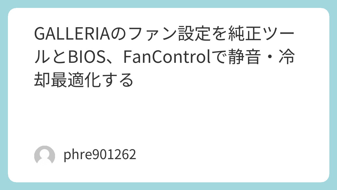 GALLERIAのファン設定を純正ツールとBIOS、FanControlで静音・冷却最適化する