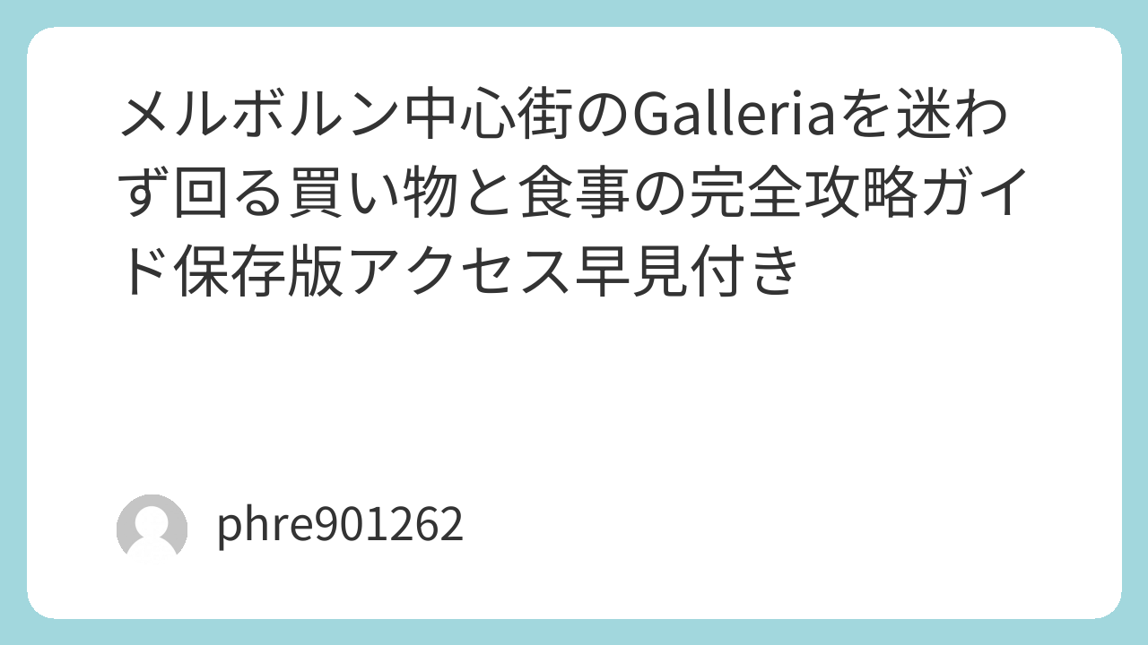 結局のところ、Galleriaは「予定の隙間に差し込むと強い」場所であり、買い物も食事も“短時間で最大効率”を狙うほど真価が出る。装備を整え、胃袋を落ち着かせ、充電の不安を消してから外へ出る——そう割り切って使えば、メルボルン中心街の旅が気持ちよく回り始める。