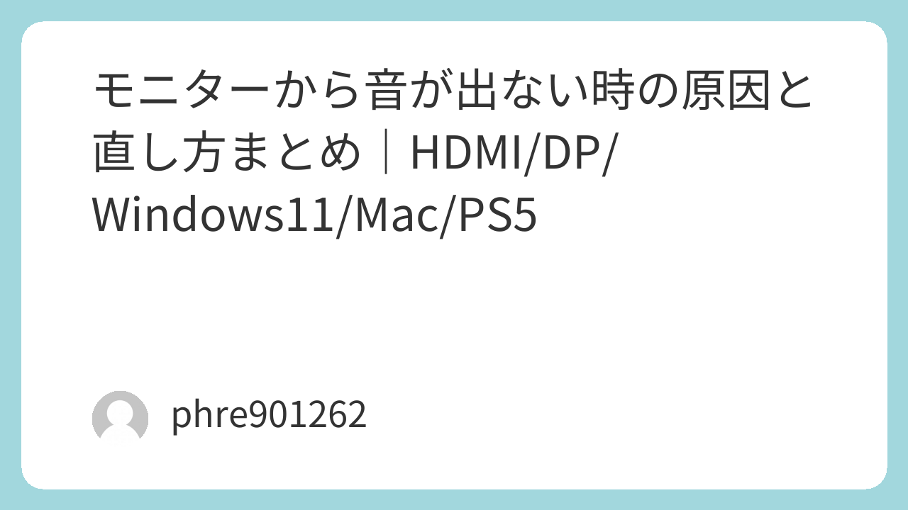 映像はモニター、音は別デバイス、という状態が混ざると無音が起きる。特にWindowsは「HDMI/DPの音声デバイス」を検出すると、いつの間にか出力先が切り替わっていることがある。モニターにスピーカーが無いのに、出力先だけモニター側になっていると、完全に無音になる。