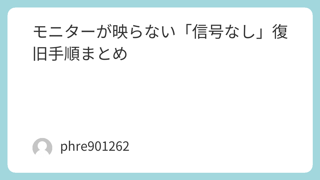 結局、「入力切替→抜き差し→端子変更→Win+P→直結→放電→切り分け」の順で進めるのが一番ラクだった。モニターの「信号なし」は、焦りやすいのに“軽症率が高い”トラブル。まずは最短ルートで当たりを引きにいこう。