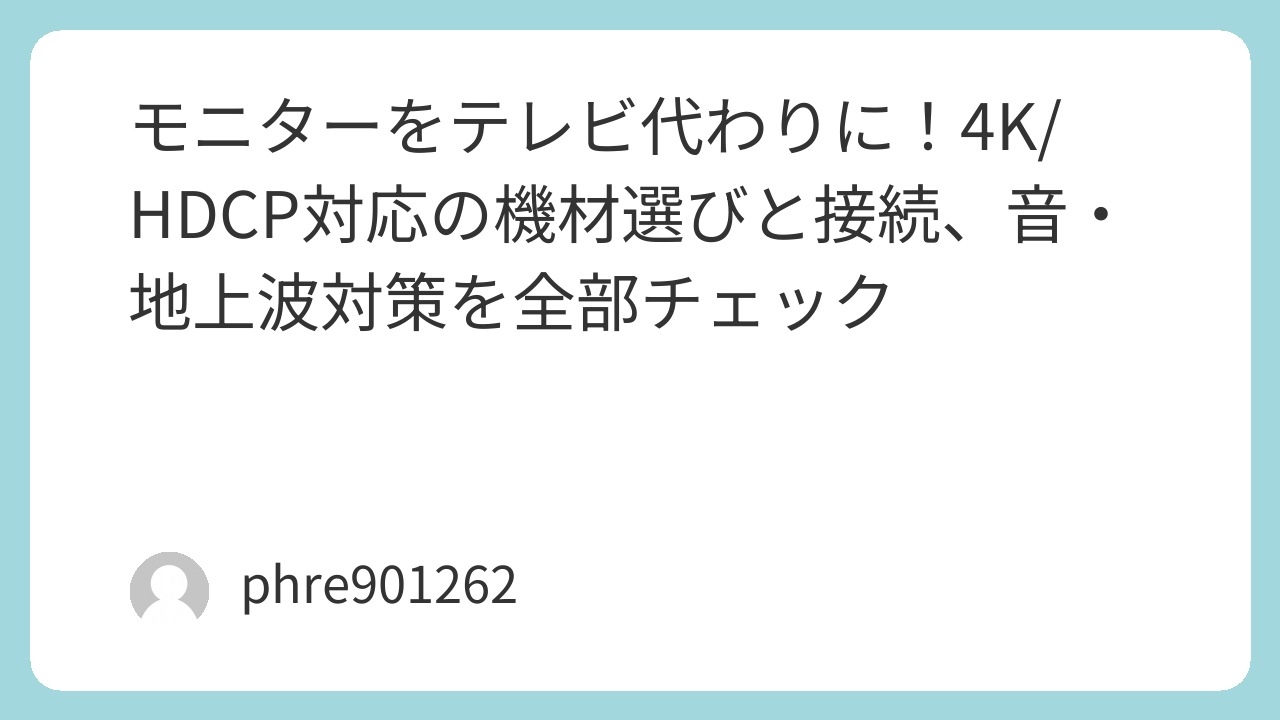 「モニターをテレビ代わりにできる?」の答えは、できる。理由はシンプルで、映像の入口さえ作ればモニターは“テレビ画面”として十分に機能するから。とはいえ落とし穴もはっきりしていて、つまずくのはだいたい「地上波(チューナー)」「音」「HDCP」の3つに集中する。