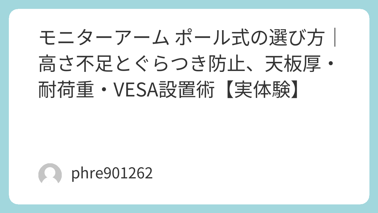 選び方は、VESA→耐荷重→ポール高→天板の順。これだけ守れば、失敗の確率がかなり落ちる。僕みたいに「あと数センチ」で買い直す前に、ポールの高さだけはケチらないでほしい。