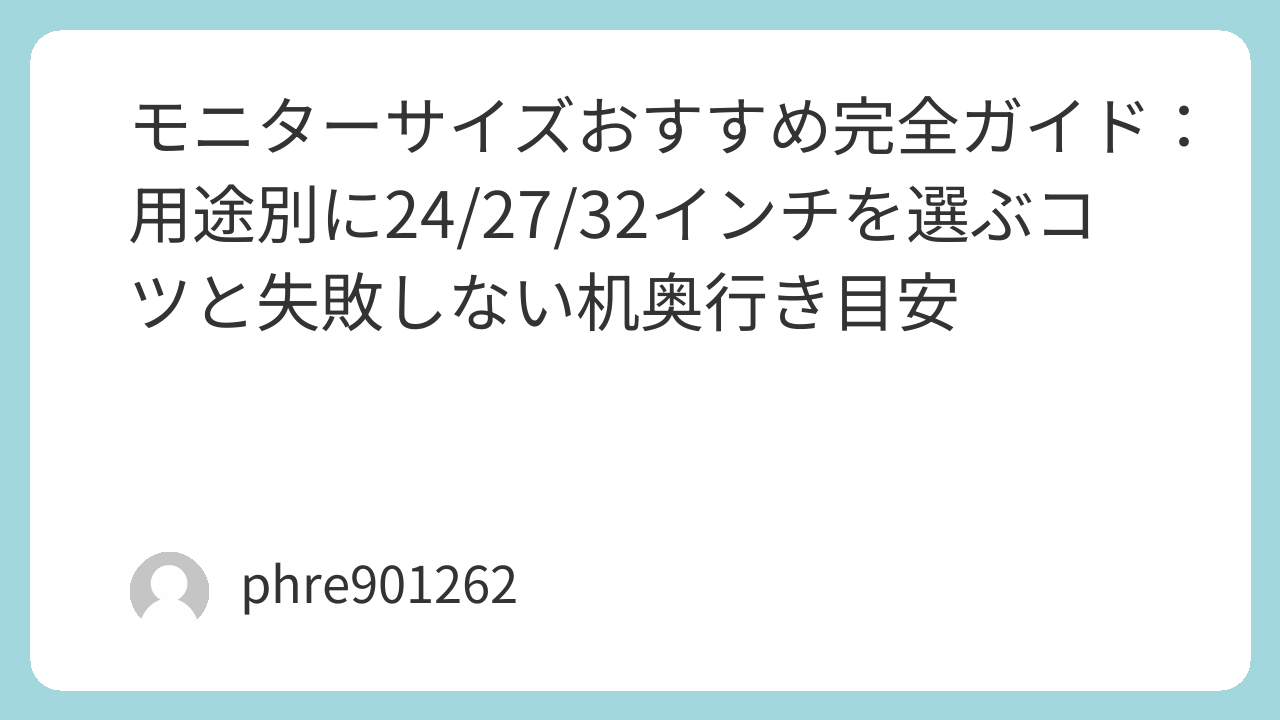 この順で決めれば、サイズ選びはだいたい当たる。最後に一言だけ。迷ったら27インチを軸にして、置けるなら32、近いなら24。これが一番、後悔が少ない。