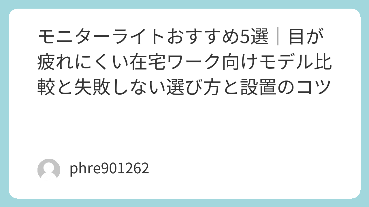 モニターライトは「デスクライトの代わり」じゃなくて、「画面に反射させず、机だけを狙って照らす道具」。ここがハマると、目と肩がラクになります。