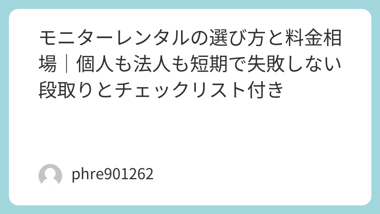 モニターレンタルの選び方と料金相場|個人も法人も短期で失敗しない段取りとチェックリスト付き