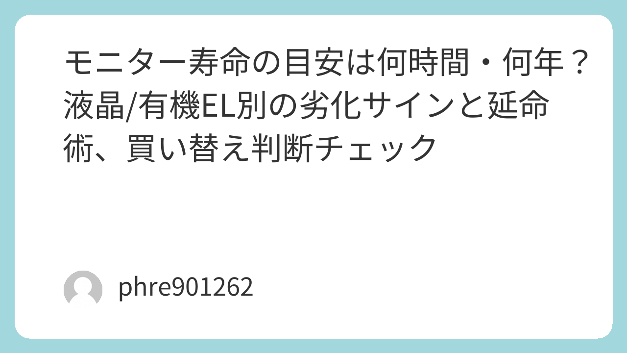 モニター寿命の目安は何時間・何年?液晶/有機EL別の劣化サインと延命術、買い替え判断チェック